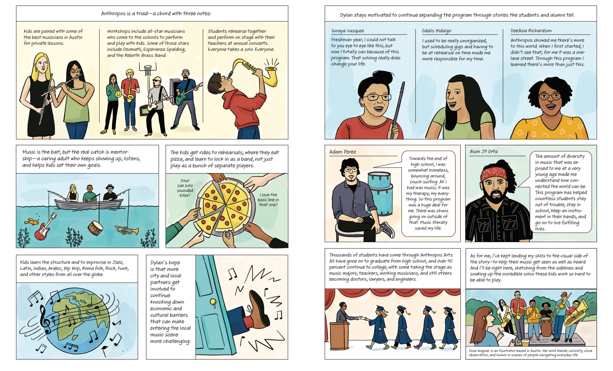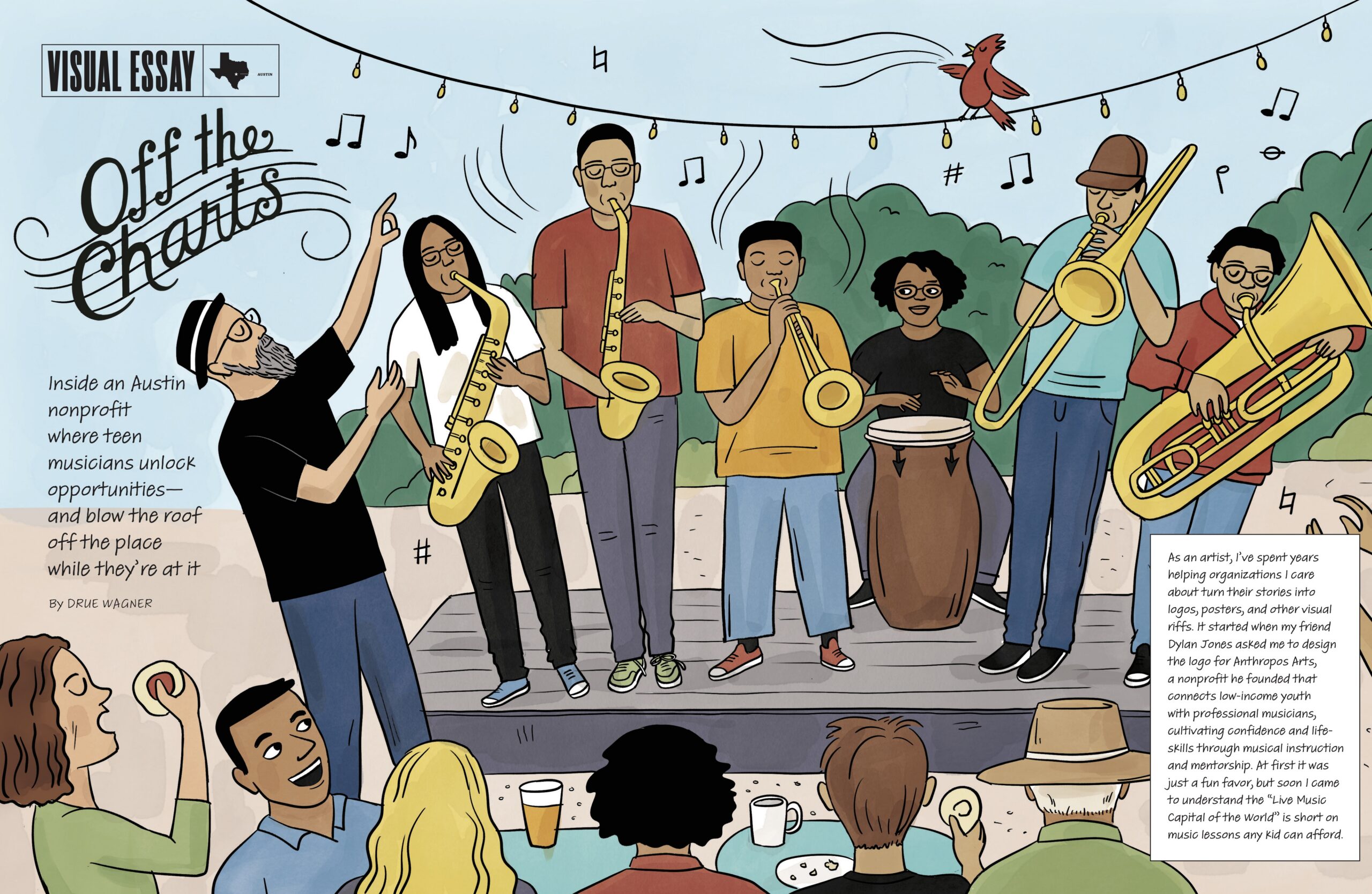 Music Off the Charts Inside an Austin nonprofit where teen musicians unlock opportunities—and blow the roof off the place while they’re at it by Drue Wagner April 17, 2026, 8:30 AM, CDT A version of this story ran in the March / April 2026 issue. You May Also Like Politics To Lead Blue Backlash, Texas Dems Turn to Austin November's liberal army will be helmed by James Talarico and Gina Hinojosa, after the capital city and Latino-majority areas propelled the former to victory over Jasmine Crockett. by Gus Bova Editor's Letter Editor’s Letter: Introducing Our March/April 2026 Issue A note from the editor-in-chief by Gus Bova Opinion When Local Police Collaborate with ICE, Children Pay the Price I know exactly what message the recent deportation of an Austin mom and her 5-year-old sends to kids. They learn that calling 911 is dangerous. by Montserrat Garibay